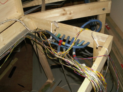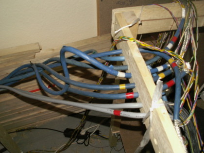 Für die Verkabelung benutze ich Kabel mit 25 Adern, die man günstig in Industriebetrieben bekommt (Kabelschrott). Die Kabel werden farblich markiert und zu den verschiedenen Anlagenteilen geführt.